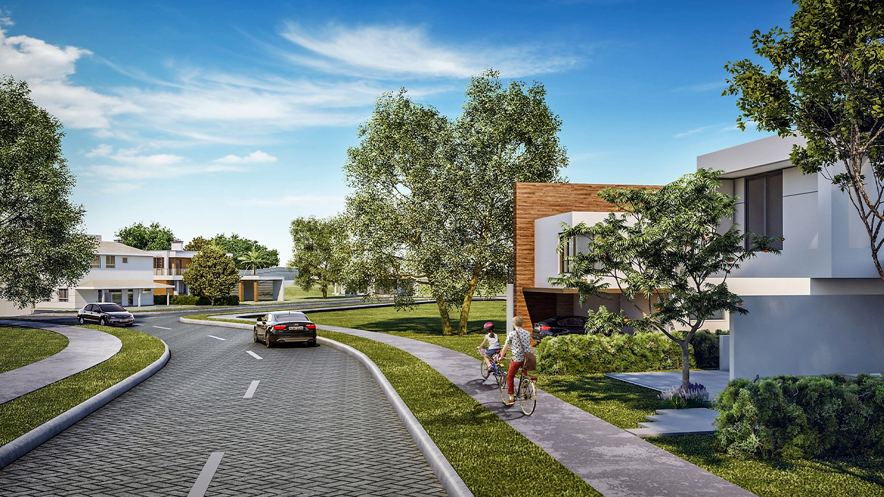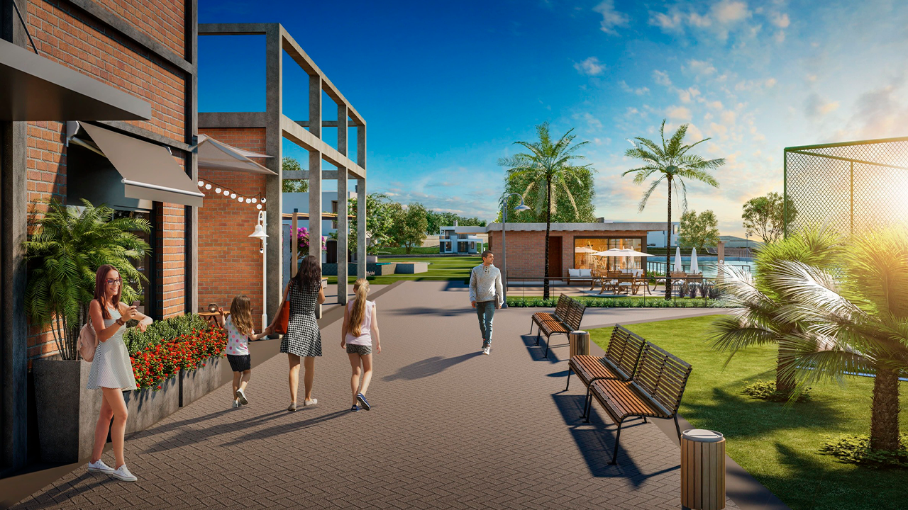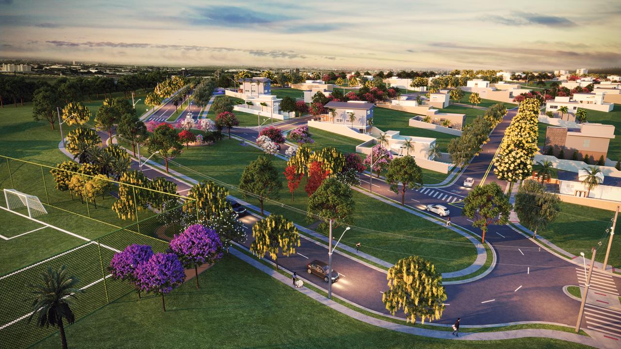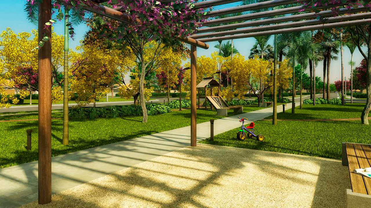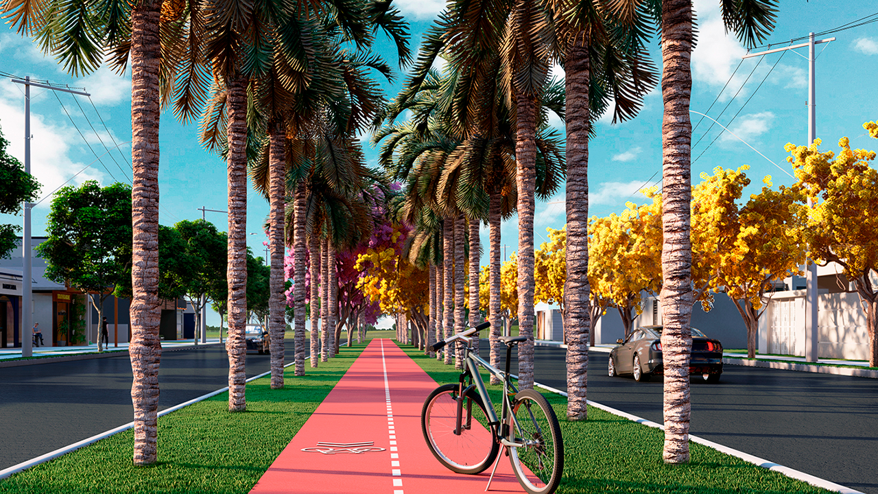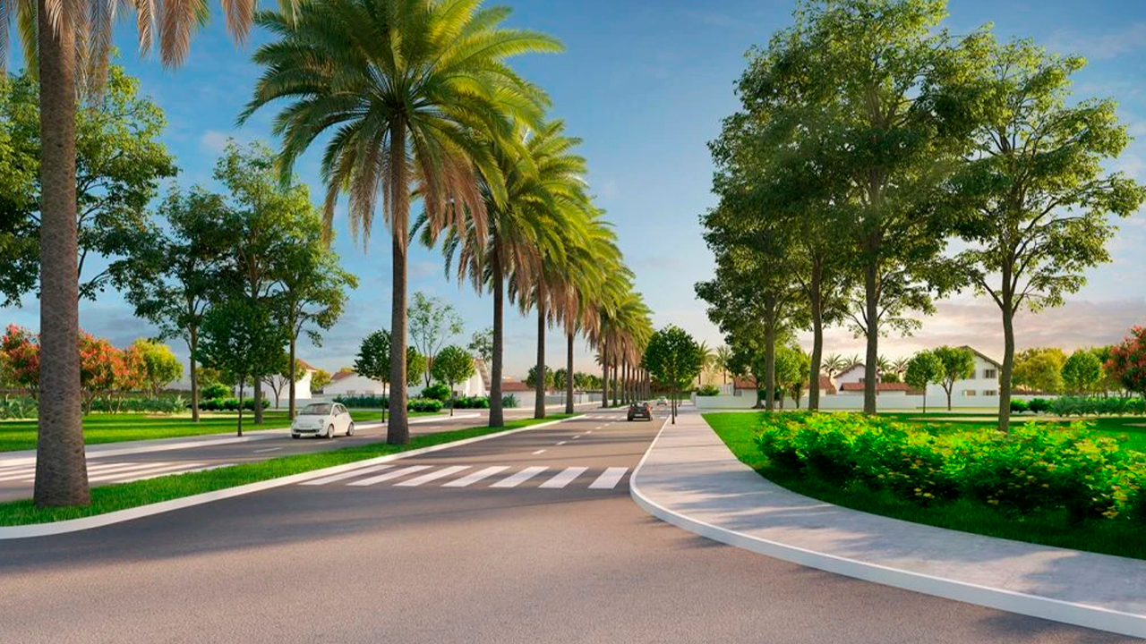Ruas arborizadas promovendo conforto e integração com a natureza.